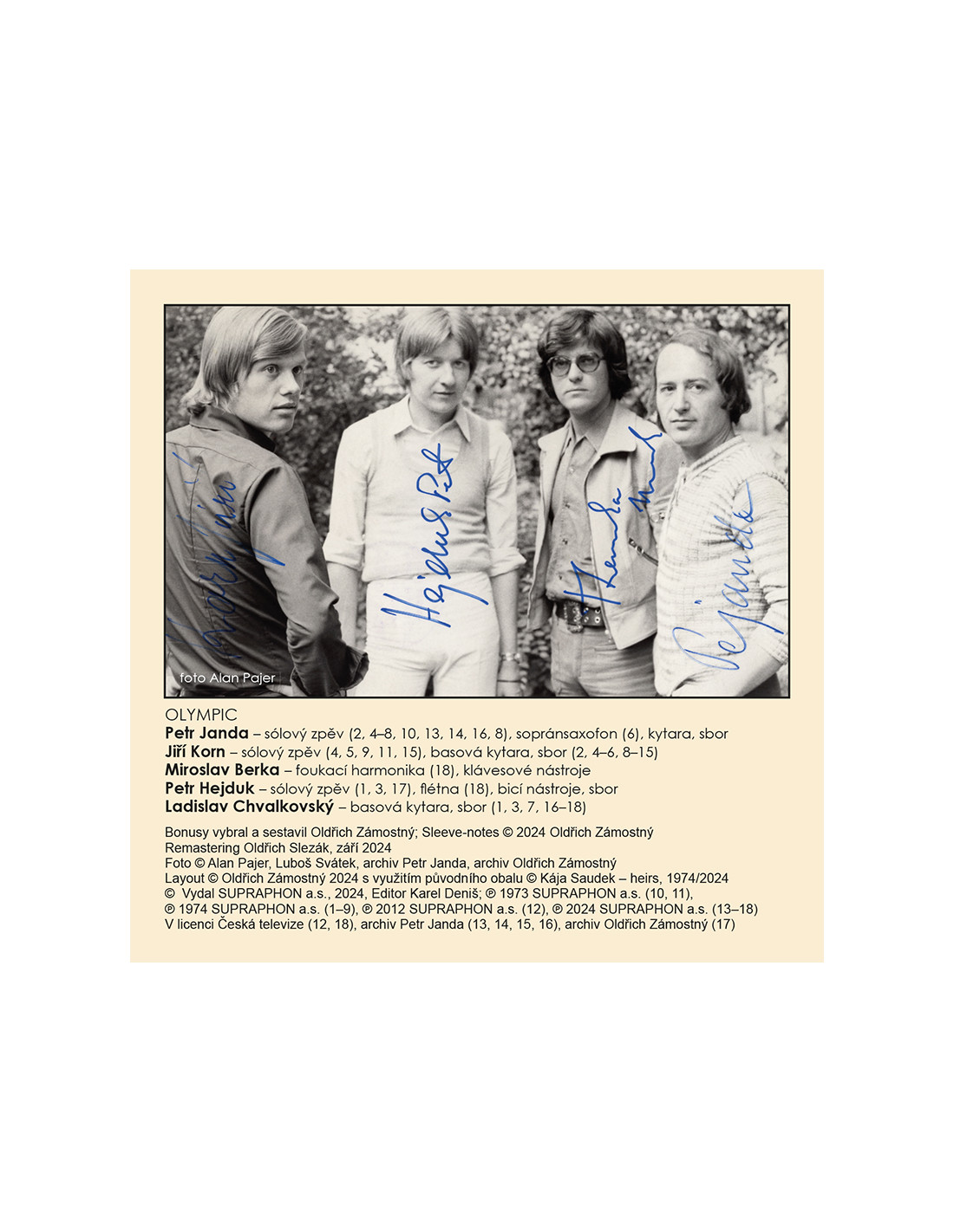Základní albová sada nahrávek vyšla v roce 1974, je tedy výročně co připomínat. Bylo to období olympicky turbulentní, když rock se míchal s popem a na pozici baskytaristy se střídali muzikanti. Vedle Ladislava Chvalkovského to byl Jiří Korn, přicházející z hvězdných The Rebels, ale souběžně rozjíždějící samostatnou mainstreamovou kariéru. Jeho vokální podíl, ať již sólový či ve vícehlasech, byl zcela nepřeslechnutelný, stejně jako podíl písniček z pera bubeníka Petra Hejduka. Petr Janda a Miroslav Berka zůstali z původní sestavy sami, kolegové v kapele, a také muzika kolem nich se proměnila: Olympic nabíral nový dech a hledal cestu dál.